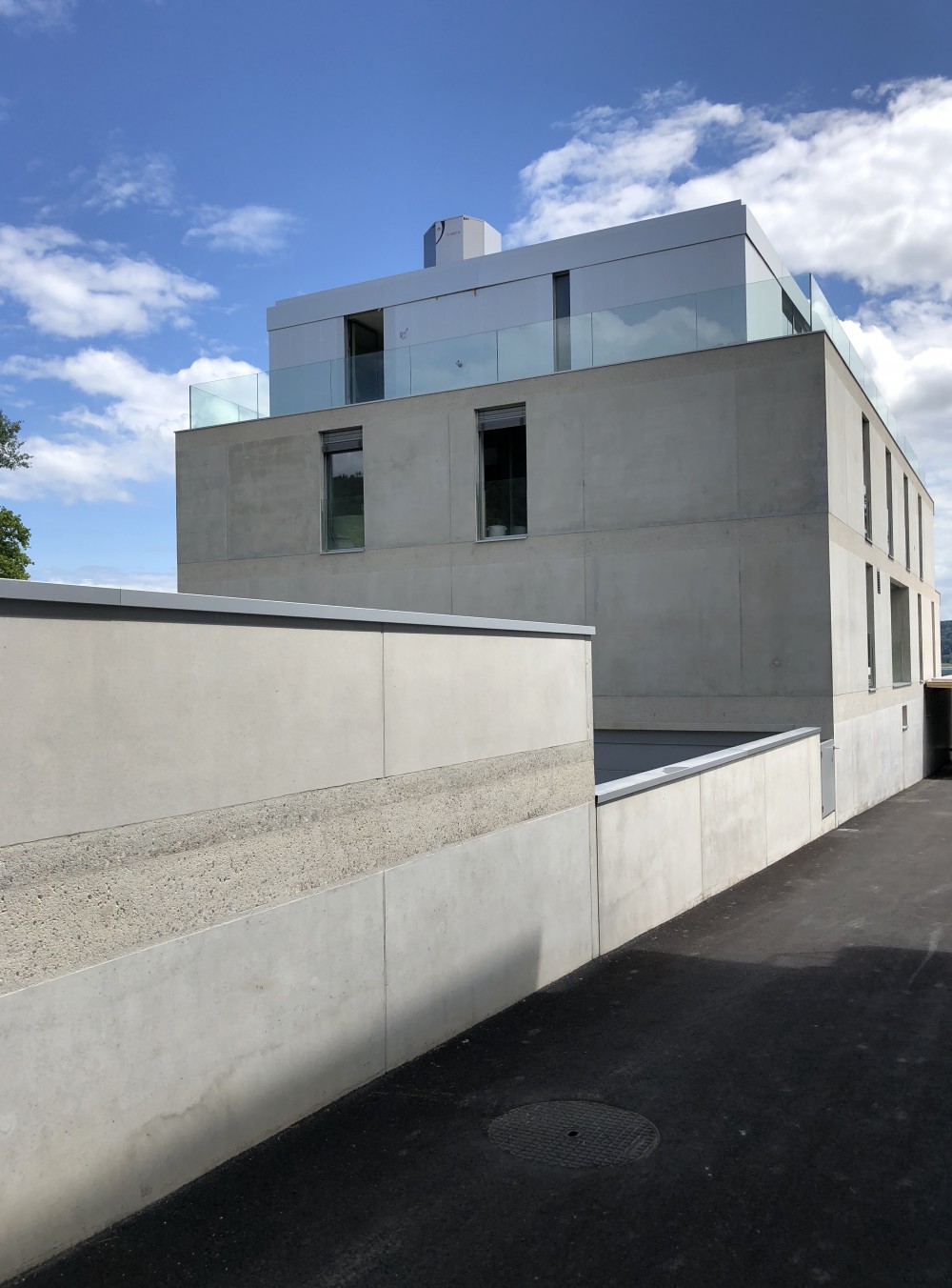 situé en zone ha3, nous avons utilisé les possibilités offertes par la réglementation en vigueur. nous avons ainsi abouti à la construction d'un projet comprenant un immeuble de 4 appartements, dont un appartement en attique et un petit bâtiment séparé qui contient les places de parking couvertes. la situation hydrogéologique ne nous permet pas de faire un parking en sous-sol. le tout comprend donc 4 appartements en PPE, mais dont les unités sont gérées afin de laisser le plus d'indépendance possible à chaque propriétaire.