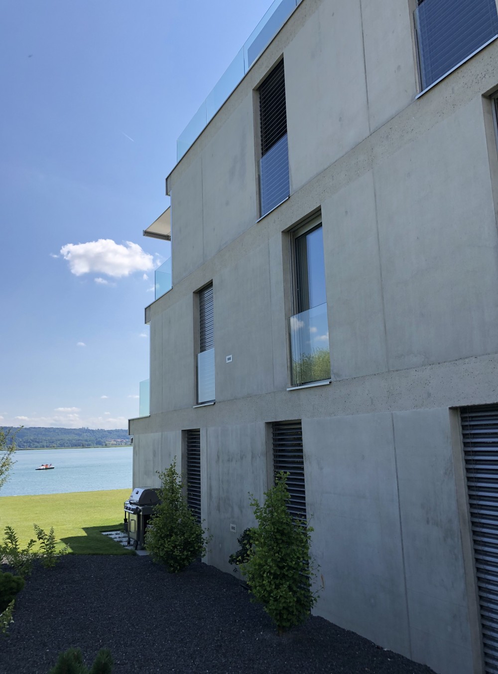 l'appartement du rez-de-chaussée a le privilège d'avoir un jardin privé adjacent à la terrasse aménagée, jardin qui s'étend jusqu'aux rives du lac.