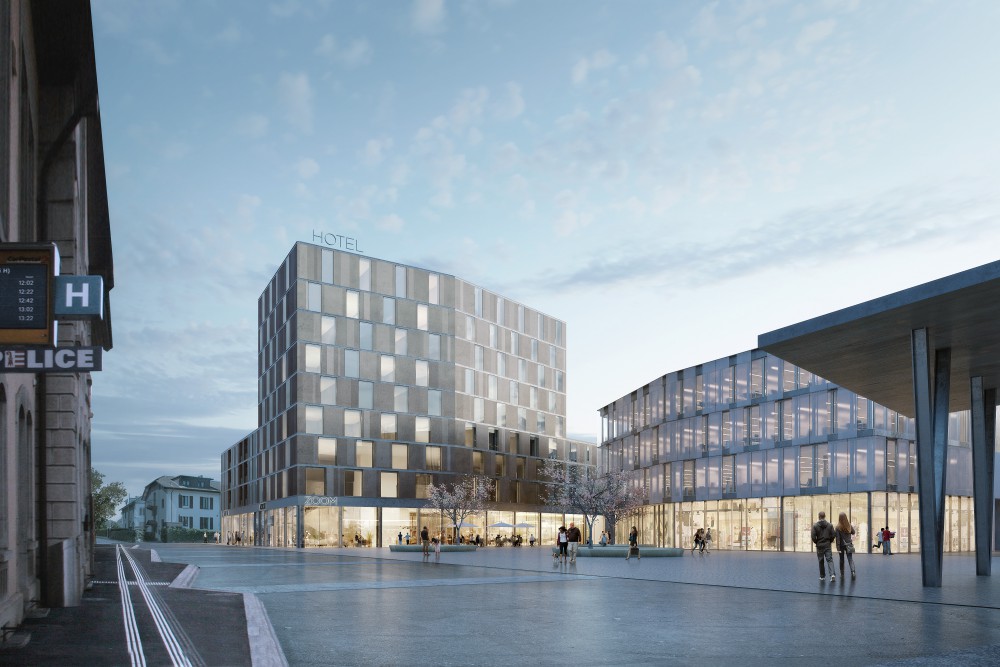 CONSTRUCTION D’UN COMPLEXE REGROUPANT DES LOGEMENTS, DES SURFACES COMMERCIALES, DES BUREAUX ET UN RESTAURANTMANDAT D’ETUDES PARALLELES - 1er PRIXréalisé en collaboration avec les bureaux comamala ismail de delémont et antoine voisard de porrentruy