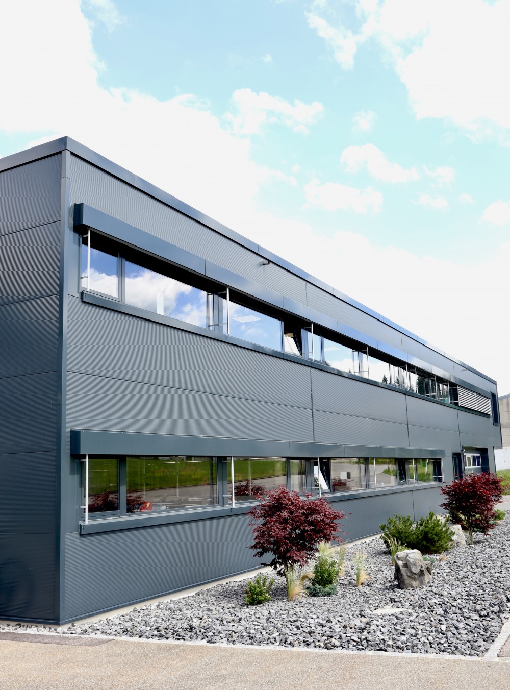 au total, le cumul des surfaces agrandies dépasse le double des surfaces initialement réalisées. sans péjorer l’image et l’identité de la première réalisation, cette extension accompagne en douceur l’évolution et la progression de l’entreprise.