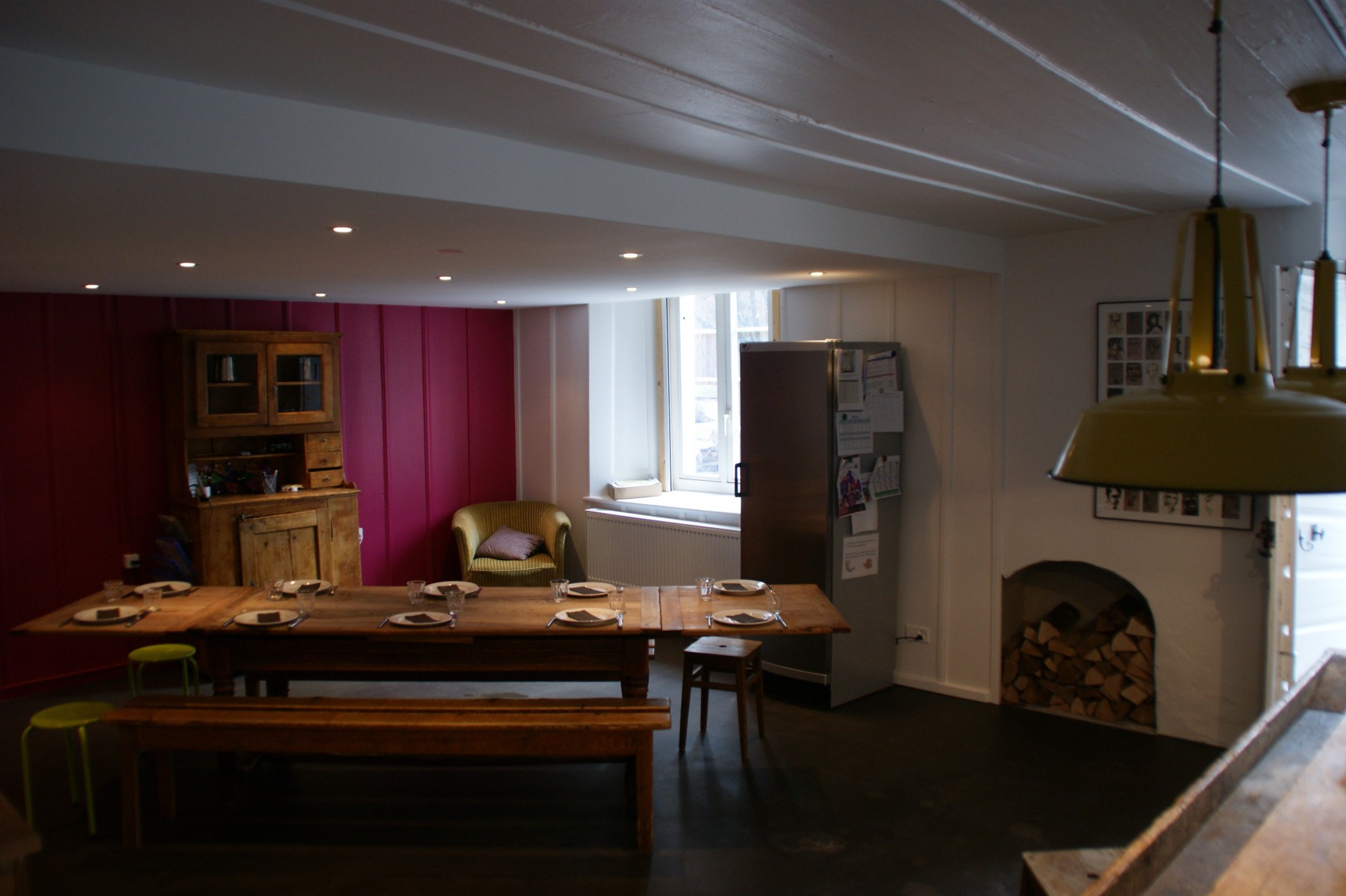 nous avons été mandatés pour la transformation de la grange dans le but d'y aménager 2 chambres supplémentaires, le bureau des éducateurs, ainsi qu'une buanderie et 2 salles de bains. la cuisine du rez-de-chaussée devenant trop exigüe, une transformation de l'espace cuisine-bureau a également été nécessaire. nous avons donc logiquement pris le parti de poursuivre la démarche de valorisation de l'existant par la sobriété et la simplicité des espaces créés et des matériaux mis en oeuvre.