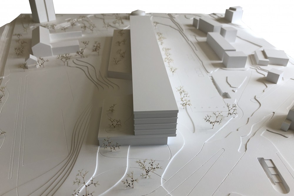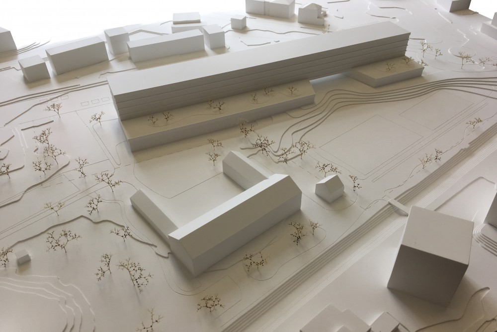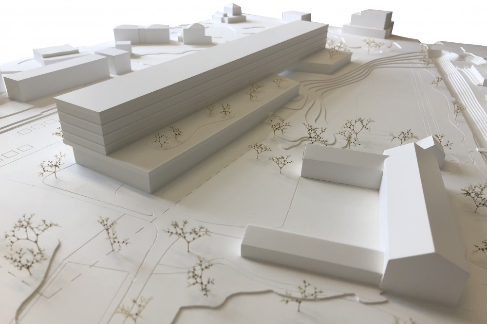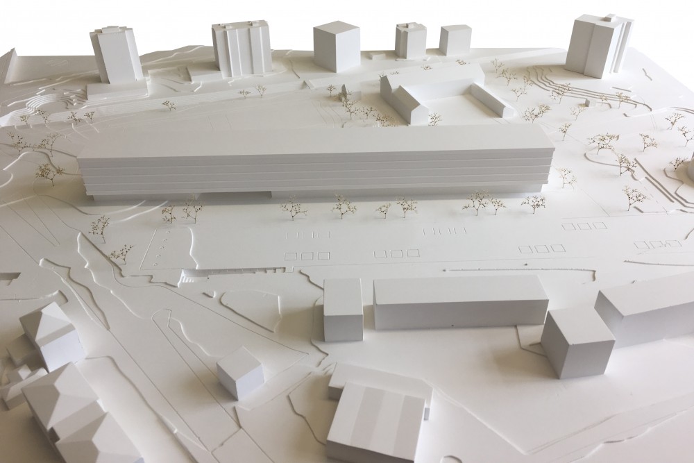 En plaçant cette construction en parallèle du Cours revalorisé, le bâtiment devient naturellement un prolongement de l'espace public urbain et de ses programmes diversifiés existants et futurs, accompagnant le flux des activités variées tantôt tout public, tantôt estudiantines, tout en densifiant cette zone tampon entre les quartiers de Vissigen et de Champsec et en en structurant leur point charnière.