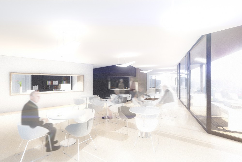 - au rez-de-chaussée sont regroupés tous les espaces publics ainsi que la zone administrative. en ouvrant les salles polyvalentes sur la salle à manger, on peut bénéficier d'un seul espace regroupant également la cafétéria et le hall d'entrée.