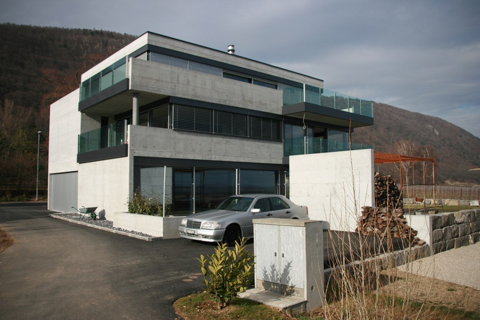 la parcelle à disposition, à l'extrémité est de la neuveville, se trouve en bordure des vignobles. elle est issue du découpage d'une ancienne parcelle faisant alors partie d'une propriété de maître. la vue sur le lac et la situation en bord de zone viticole en font un endroit idyllique pour une résidence. comme souvent dans ce secteur, le choix a été fait de bâtir un petit immeuble au lieu d'une villa, en restant cependant dans des dimensions et des formes propres à ce qui est construit en général à la neuveville.