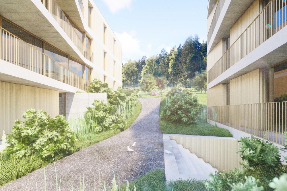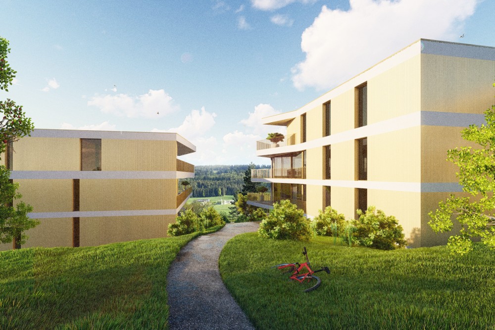 le projet « la lisière » est situé en bordure de forêt, sur les hauts du village de Tramelan. cette parcelle exceptionnelle offre un large dégagement sur le village et la verdure environnante.