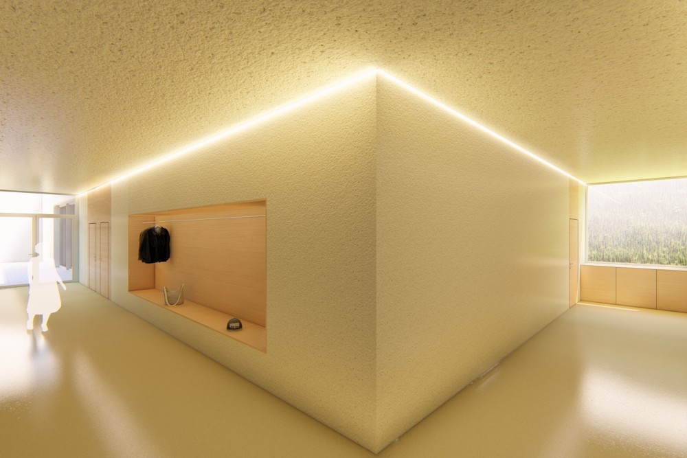 bouchardé et imaginé dans des teintes de calcaire jurassien, le béton porte et anime le bâtiment. sa structure lui confère un aspect naturel qui souligne ce dialogue entre le bâti et son environnement.