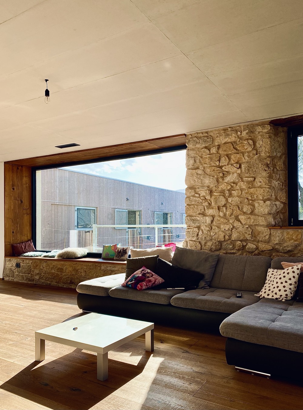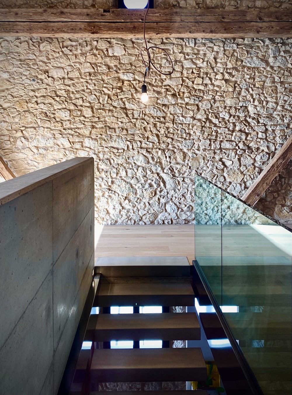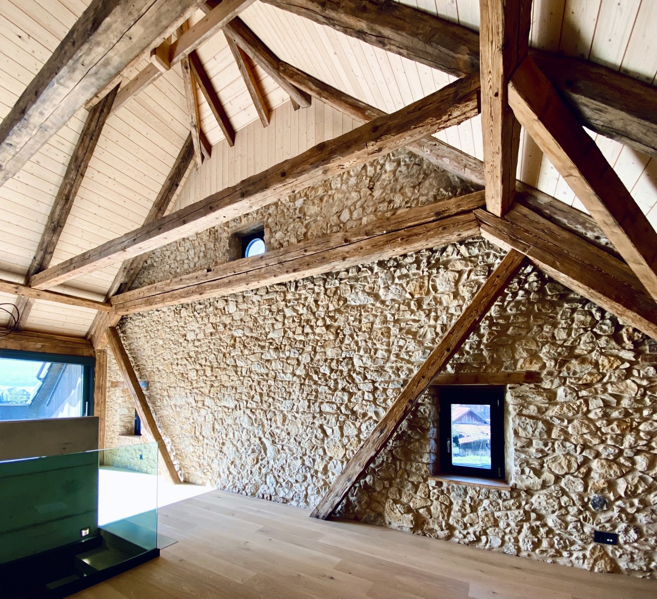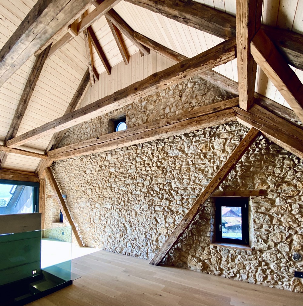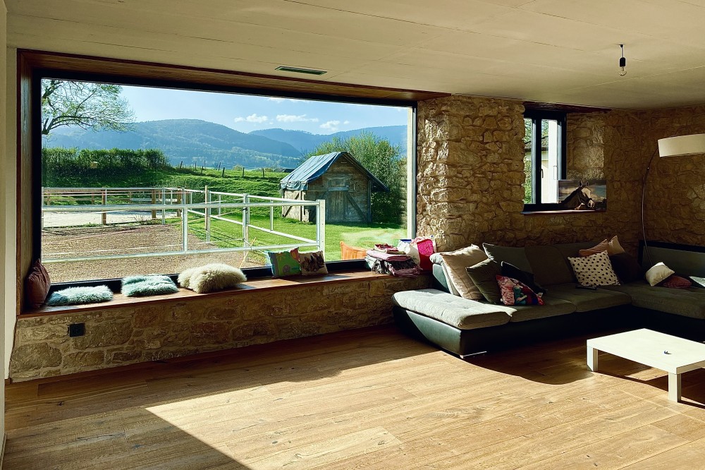 dans cette zone classée au patrimoine du Jura, la ferme devait être rénovée et transformée en respectant son histoire.