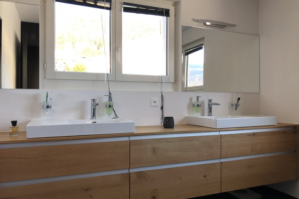 le sous-sol qui comprend le garage, 3 chambres, une salle de bain, un wc séparé, une cave et le local technique n’a pas subi de travaux de rénovation, si ce n’est quelques adaptations techniques et des travaux de peinture dans les circulations.
