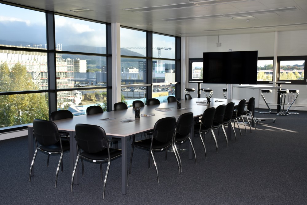 le deuxième étage comprend une zone d’exposition, à l’est, le local technique, une grande surface de stockage, des bureaux (ouverts et fermés) ainsi que la zone cafétéria. cette dernière bénéficie d’une large terrasse, orientée sud.