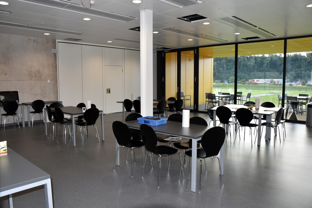 les façades sont traitées de manière sobre et simple. à l’est, au sud et à l’ouest, des panneaux sandwich métalliques habillent l’ensemble. des bandeaux vitrés amènent de la lumière dans les locaux qui le nécessitent. comme mentionné en préambule, la façade nord est complètement vitrée. de cette manière, les différentes surfaces bénéficient au maximum d’un éclairage naturel optimal.