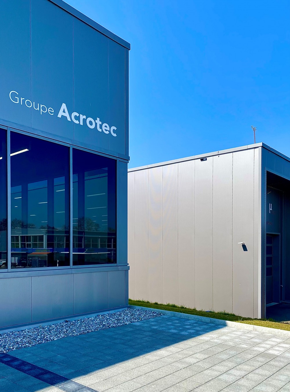 le projet est composé d’un seul volume. il intègre une grande surface d’atelier au rez-de-chaussée. la hauteur de l’atelier est très généreuse afin de laisser de la place à la technique et aux centres d’usinage. cette grande hauteur permet également de contenir un bloc sur deux étages. tous les lieux dévolus au fonctionnement du bâtiment et à l’accueil des visiteurs et employés s’y trouvent : locaux techniques, sanitaires, vestiaires, etc. la rationalité de la conception et sa compacité permettent de maximiser les surfaces d’atelier. la partie administrative et la cafétéria, elles, sont partagées avec une entreprise sœur sur la parcelle adjacente au nord. reliées par un couvert élégant et discret les deux entreprises mettent en commun certains de leurs locaux et bénéficient ainsi d’une bonne synergie.