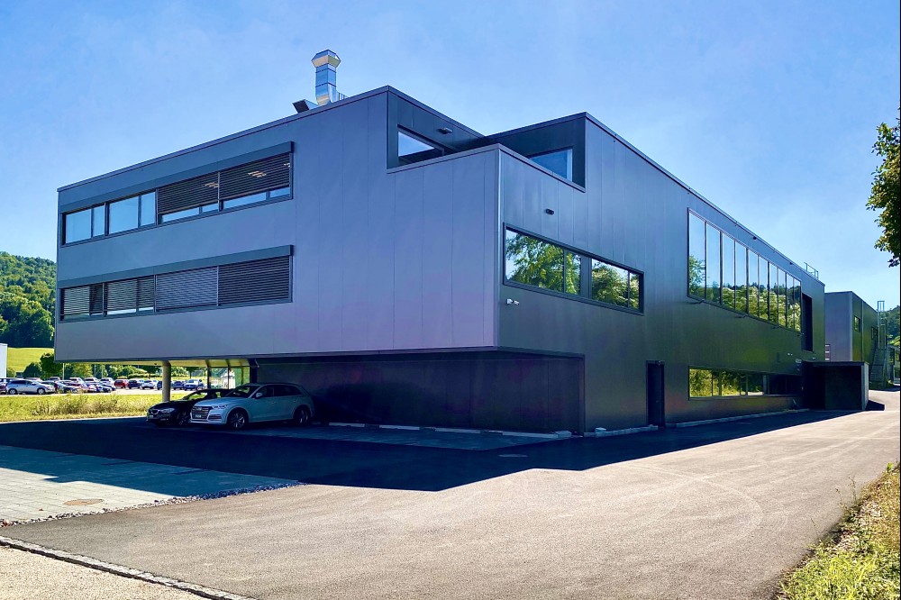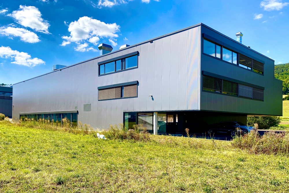la parcelle se situe dans une zone industrielle à l’est du village de develier. le terrain est en pente douce contre l’est. sur les parcelles voisines à l’ouest et au sud, des bâtiments industriels sont en fonction mais laissent encore un grand dégagement. au nord la vue est ouverte sur les champs et un petit ruisseau. l’accès pour les camions se fait depuis une route de desserte qui longe toute la façade nord ; à l’est une route communale permet l’accès au parking de la direction.