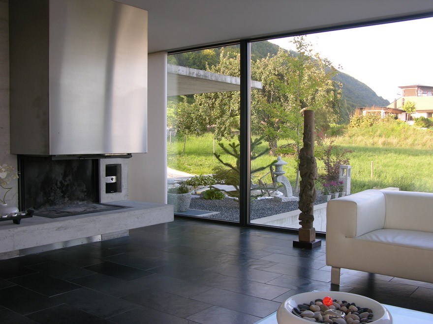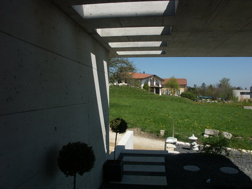 située sur les hauteurs de la neuveville, aux abords immédiats des vignes et de la chaîne du jura, la villa est conçue comme une entité n'offrant ni "avant" ni "arrière", mais s'ouvrant aux quatre directions, ceci dans la philosophie "zen" de la maîtresse de maison.