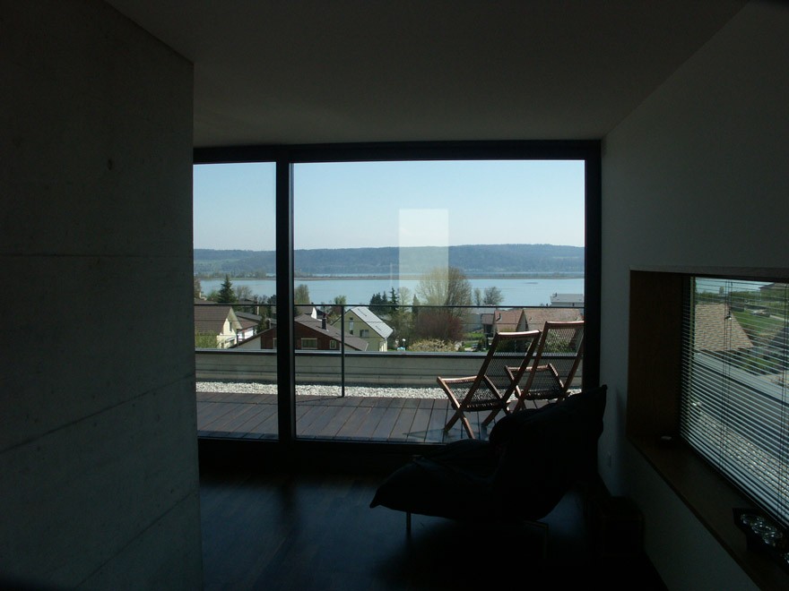 la zone jour qu'est le rez-de-chaussée est complètement vitrée et offre la vue, l'échange et la transparence sur 360°. l'étage regroupant la zone nuit est lui plus introverti et distribue les chambres en étoile. l'attique comprend la zone parents et offre une vue panoramique sur le lac et la chaîne des alpes.