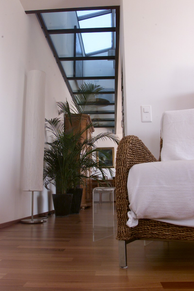 une distribution centrale assure la liaison entre les différents niveaux, autour de laquelle s'articulent les espaces de jour et de nuit. de grandes baies vitrées offrent des cadrages privatifs sur l'extérieur, tout en assurant une certaine intimité grâce au positionnement de la villa. la toiture a été exploitée pour l'aménagement d'un attique qui sert de pièce de réception, pergola et terrasse. d'ici la vue est imprenable sur le lac, l'île de st-pierre et la chaîne des alpes.