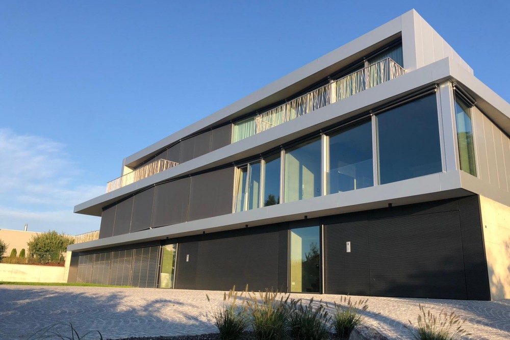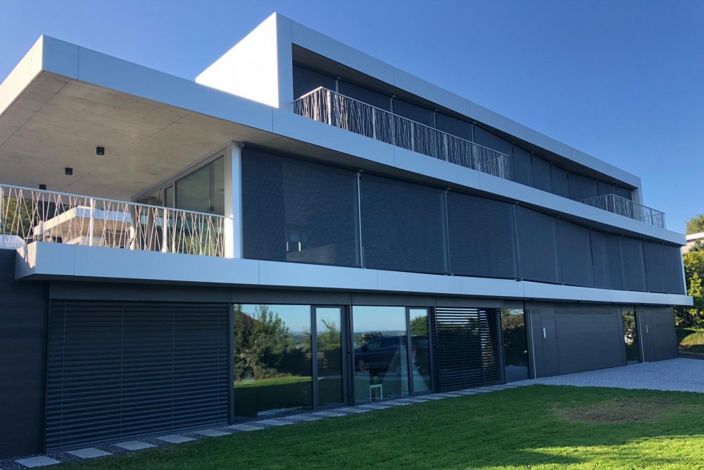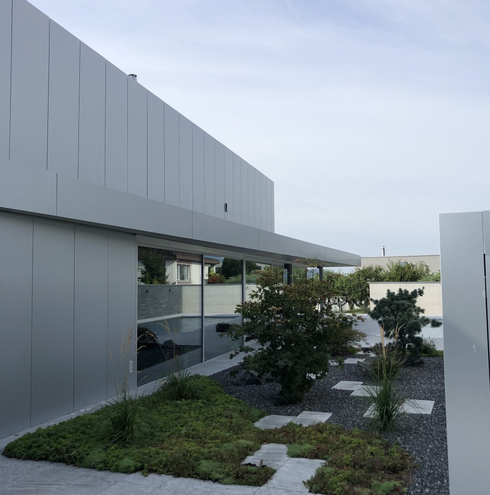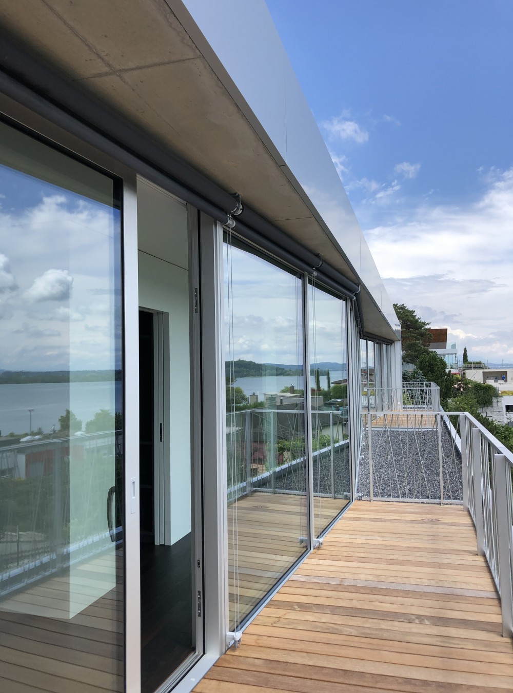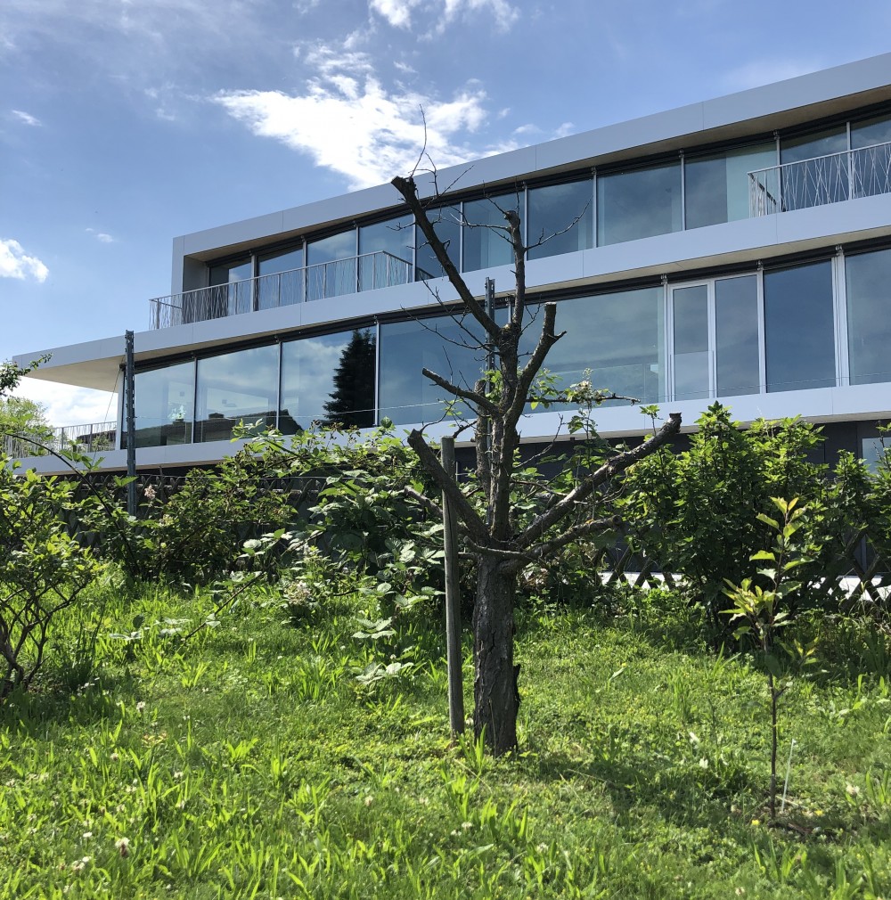 sur une parcelle résiduelle dans une situation remarquable avec un dégagement sur le lac et les alpes, nous a été donné le mandat de construire une villa pour un couple avec 3 enfants comme habitation principale pouvant accueillir une jeune famille et permettant de profiter un maximum des espaces extérieurs, ainsi qu’un appartement pour deux personnes pouvant regrouper deux générations dans la même construction.