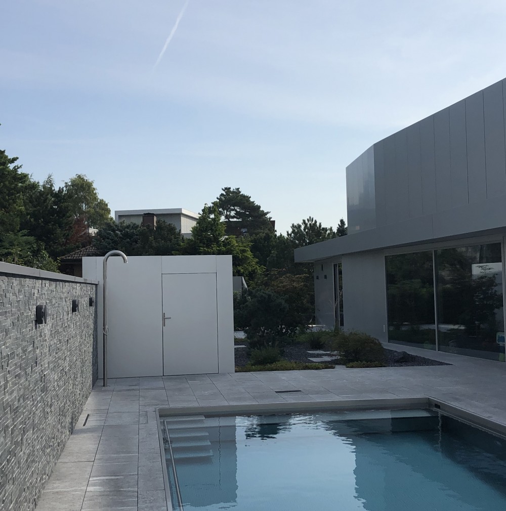 le projet a dès le départ été inspiré d’une villa voisine dont nous avions établi le projet quelques mois auparavant. c’était ainsi l’occasion unique et idéale de gérer un ensemble bâti avec des volumétries et des matérialisations similaires, en dialogue dans cette situation privilégiée.