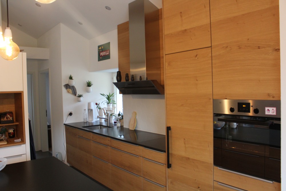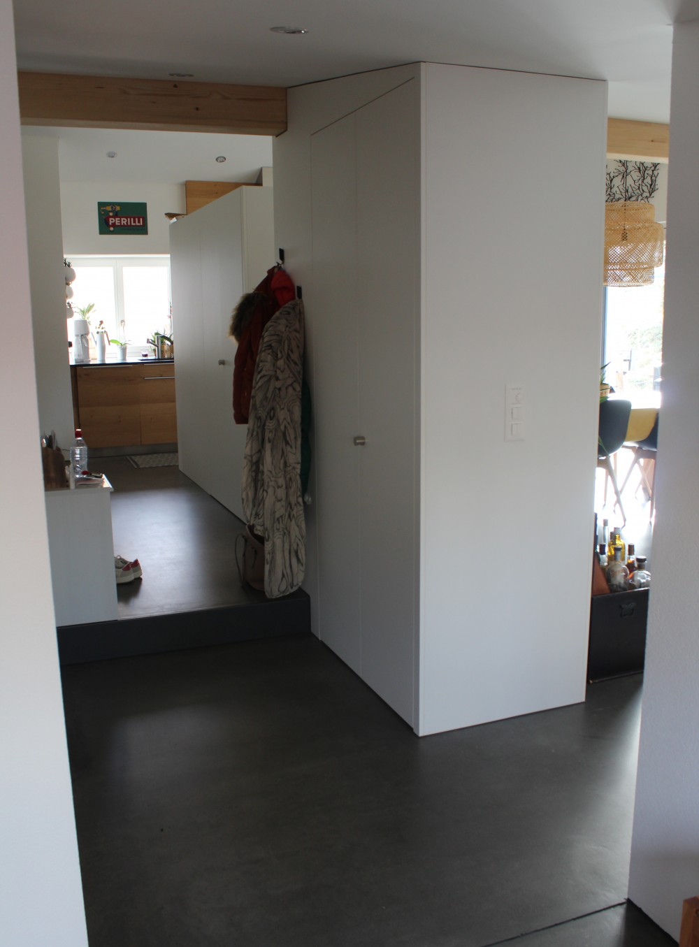 au final, les éléments modernes que sont par exemple des chapes traitées et visibles une menuiserie claire et épurée se combinent parfaitement avec les éléments d’origines du bâtiment. le tout offre un ensemble contemporain et harmonieux.