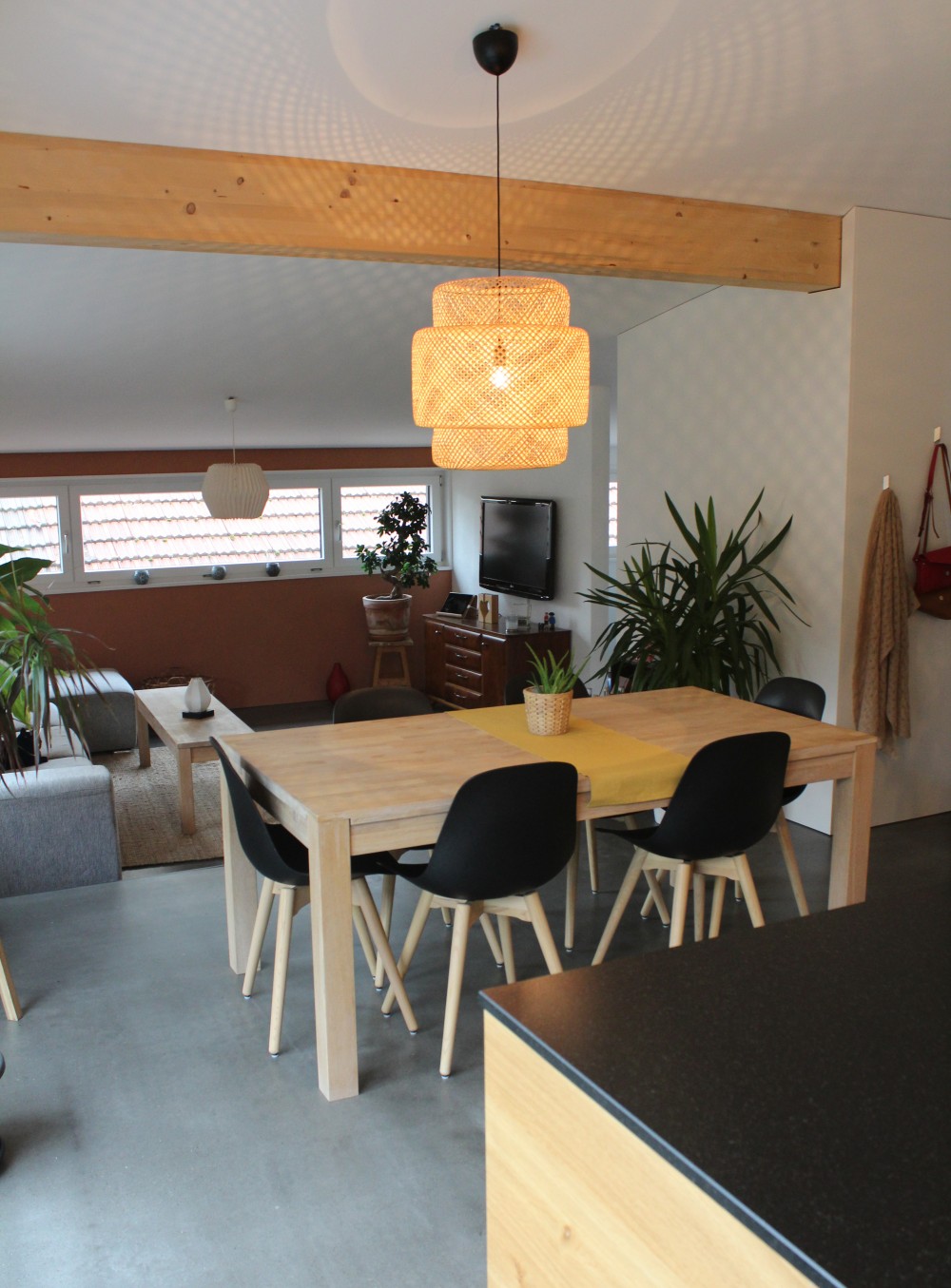 située au centre du village de malleray, la maison existante comporte deux logements. le premier occupe la surface du rez-de-chaussée alors que le second est un logement situé à l’étage, en attique. le projet concerne uniquement le deuxième appartement. il convient de trouver une solution pour valoriser au maximum la surface ainsi que le volume à disposition.
