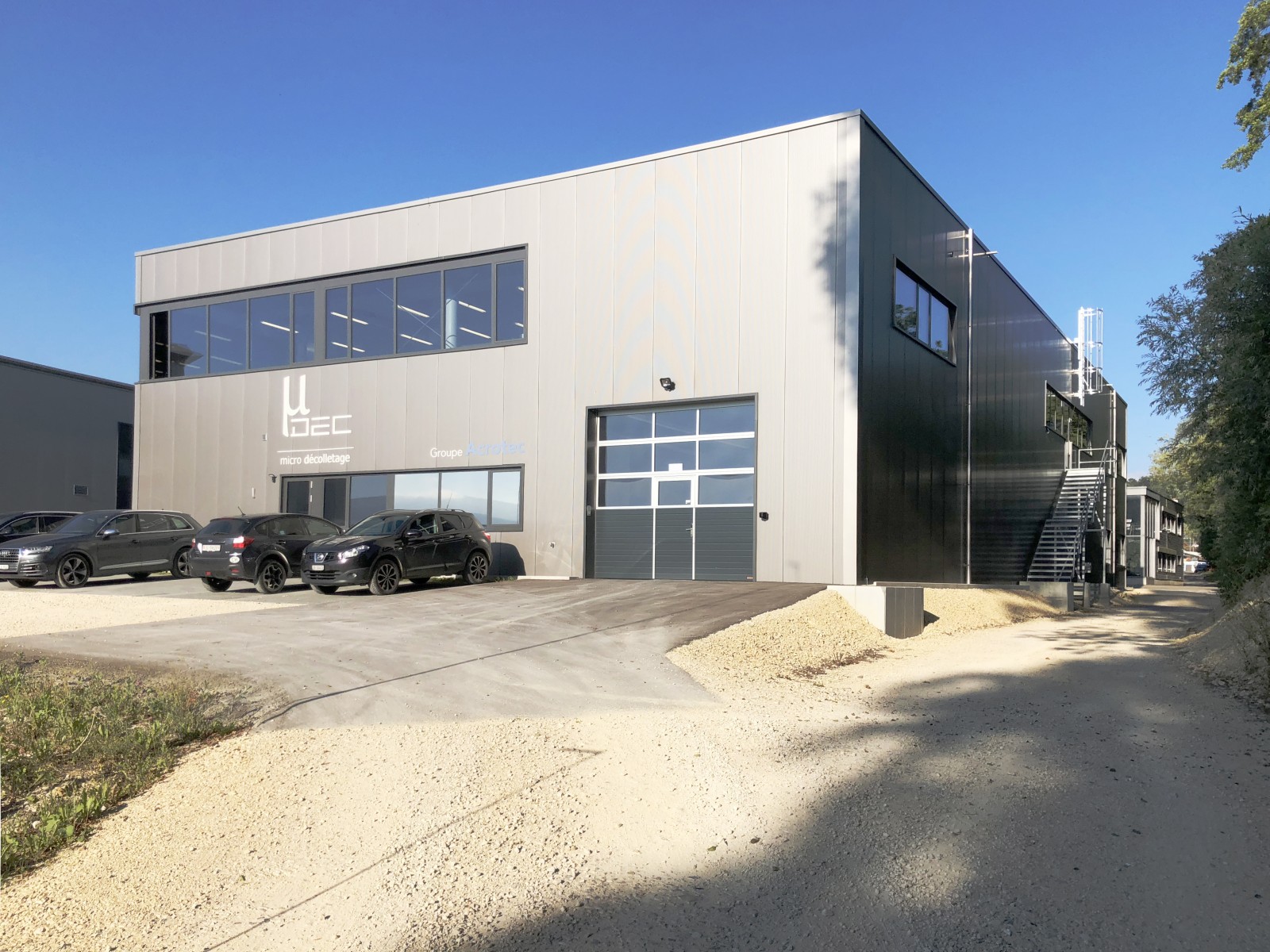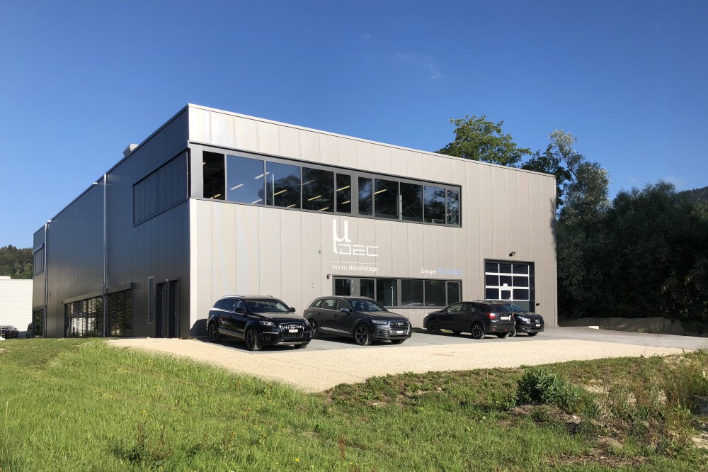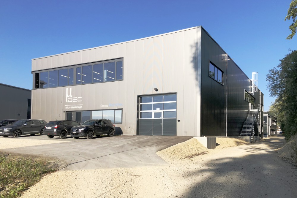 le projet est conçu sur deux niveaux de tailles équivalentes et accueille deux entreprises distinctes. le niveau inférieur comprend tous les locaux techniques, l’accès du personnel, les vestiaires, les sanitaires, la zone de livraison, deux entrées différentes pour chaque entreprise et un atelier de micro-décolletage vitrée au sud.