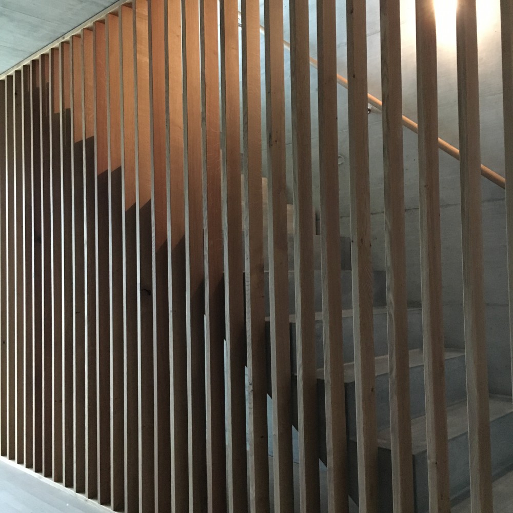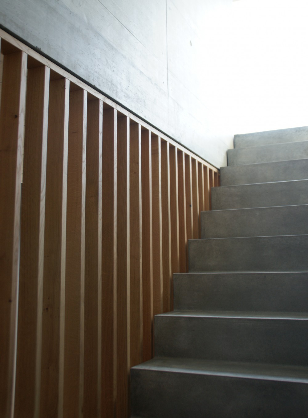 à l'extérieur, le béton visible et l'aluminium éloxé naturel, confère à cet écrin sérénité et sobriété.