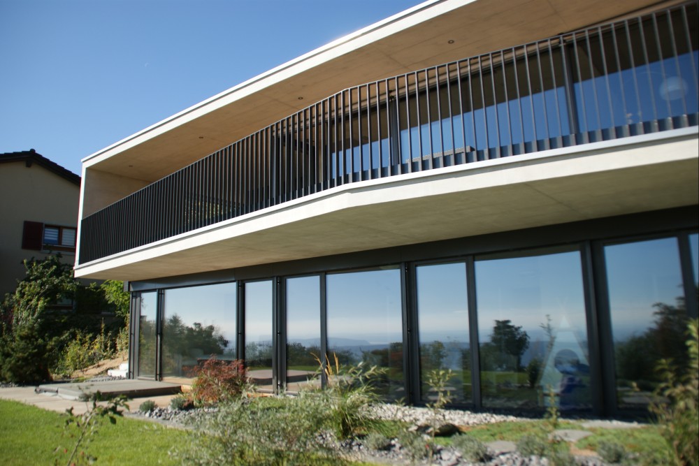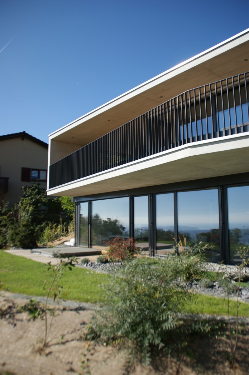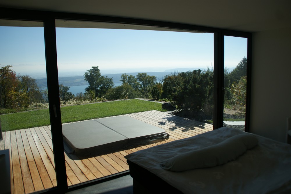 la vue depuis la parcelle est ouverte sur 180 degrés sur le seeland, les trois lacs et les alpes, et offre un ensoleillement et un dégagement exceptionnel.